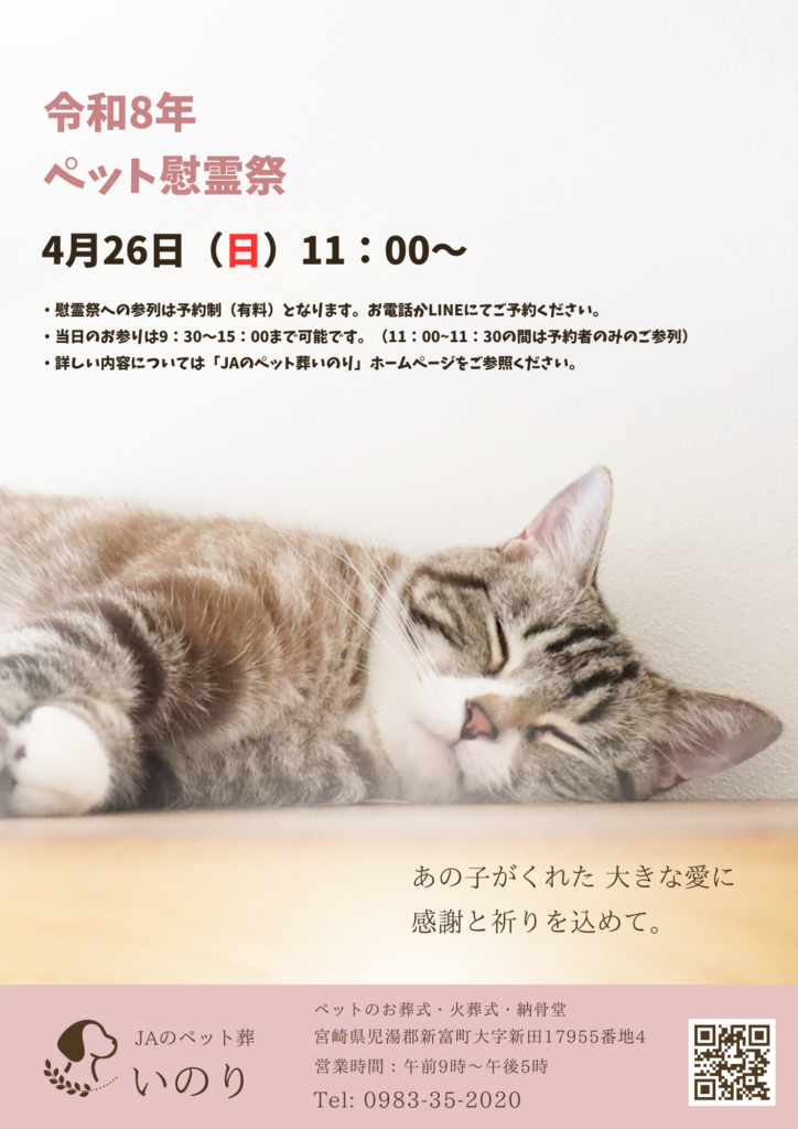 このたびJAのペット葬いのりでは、春の合同慰霊祭を執り行います。
